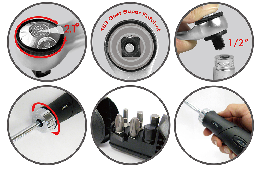 • 棘輪扳手168齒:棘輪設計讓旋轉更順手且角度更精準。