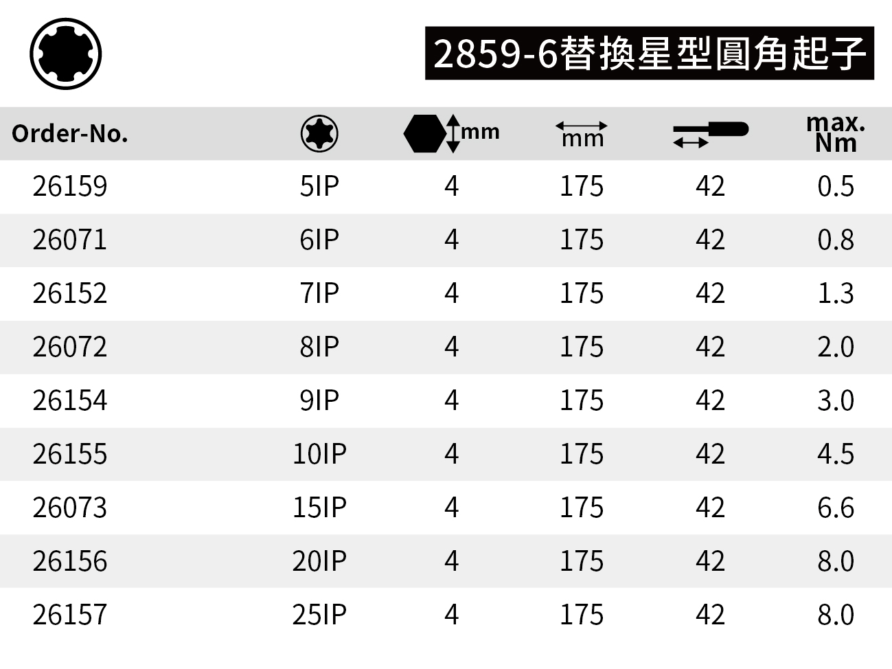 德國 Wiha 替換星型圓角防脫落起子 2859-6R