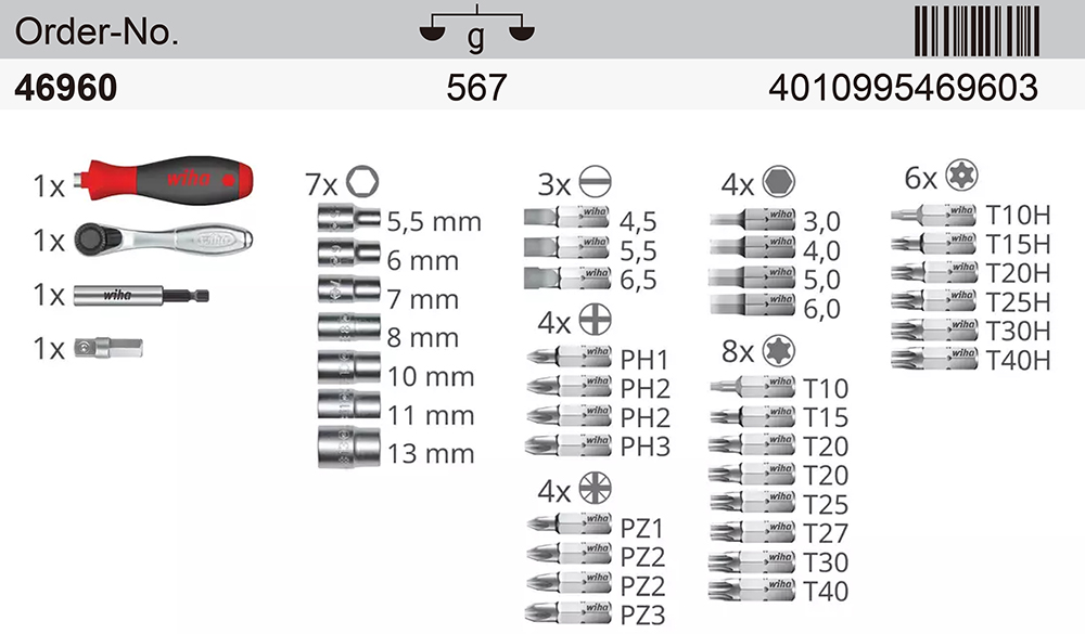 德國 Wiha 60件公制2分4分套筒組 44685