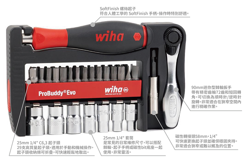 德國 Wiha 40件 1/4"隨身起子套筒組 ProBuddy® Evo