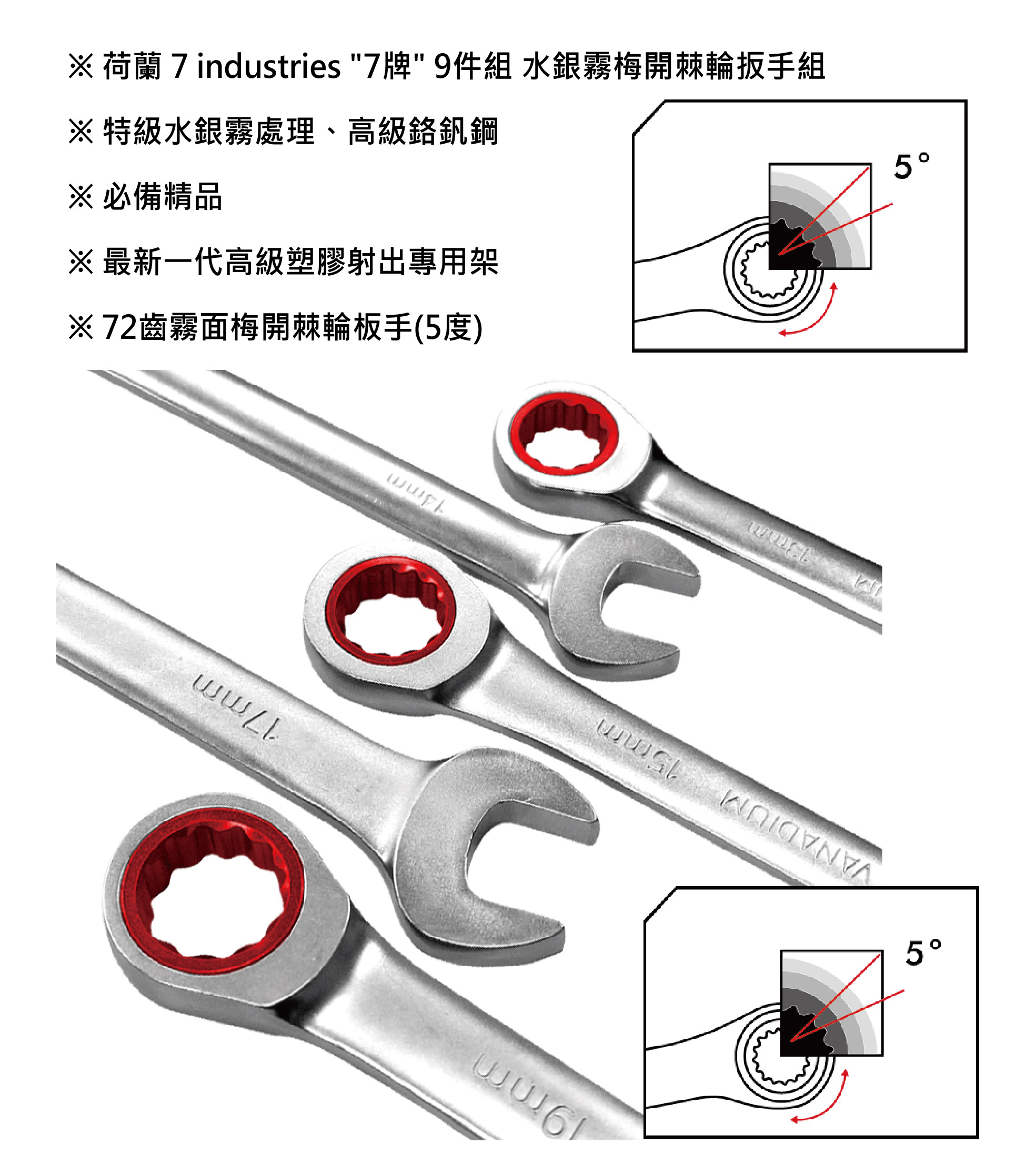 - 荷蘭 7 industries 特級水銀霧 棘輪扳手 9件組 592064